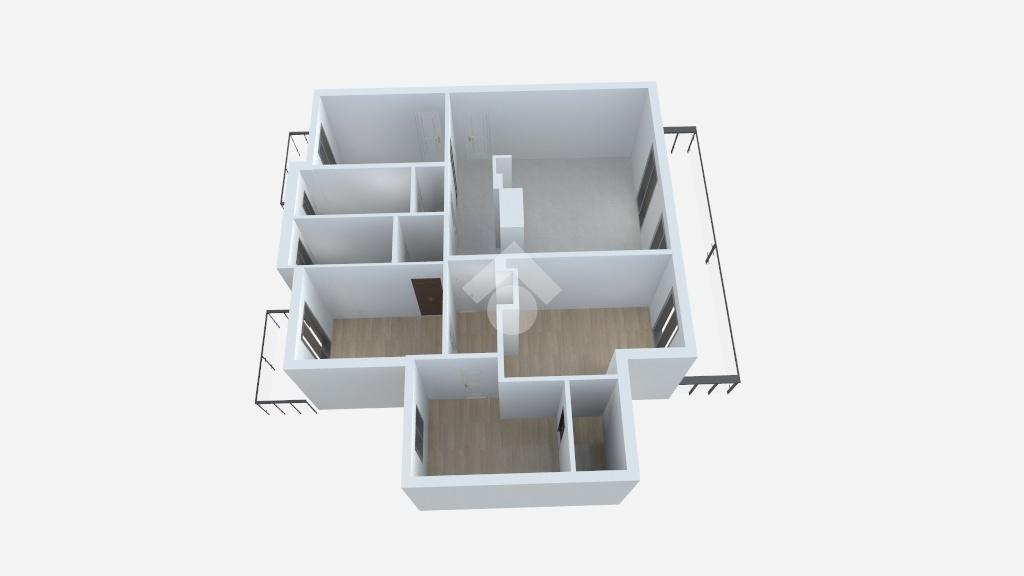 L'ingresso si apre su un ampio e luminosissimo salone, inondato di luce naturale e impreziosito da parquet in rovere e marmo Botticino, con accesso diretto ad un ampia balconata.